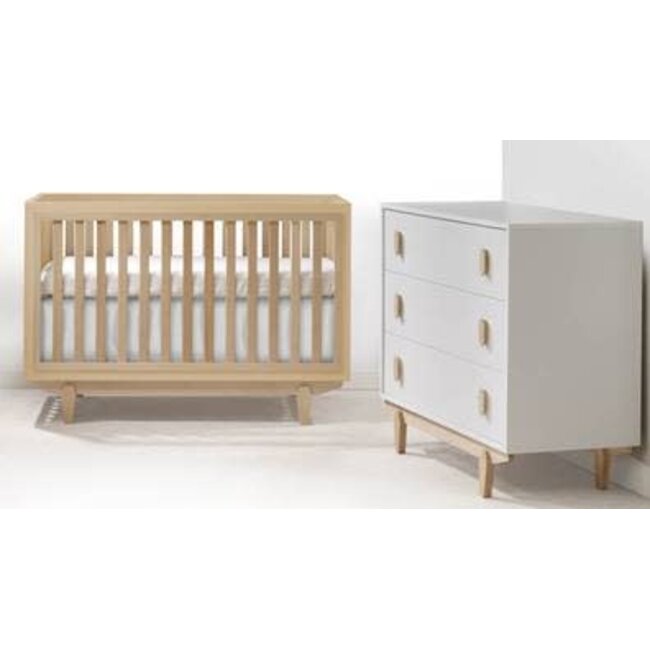 Tulip Juvenile Tate Convertible Crib With 3 Drawer Dresser XL Natural/White-Natural